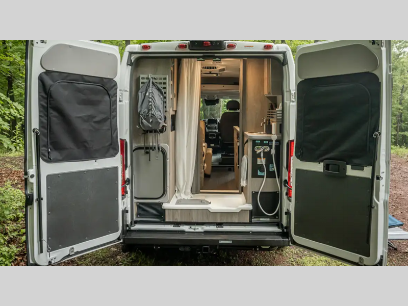 Sleeps 2 Length 17 ft 10 in Ext Width 6 ft 9 in Ext Height 9 ft 5 in Int Height 6 ft 3 in Interior Color Nomad Exterior Color Full Body Paint; Ceramic Gray, Bright White, Bright Silver Hitch Weight 3500 lbs GVWR 8550 lbs Fresh Water Capacity 20 gals Grey Water Capacity 20 gals Fuel Type Gas Engine 3.6 V6 Chassis RAM Promaster Horsepower 280 hp Fuel Capacity 24 gals Wheelbase 136 in Refrigerator Type Compressor Driven Refrigerator/Freezer Refrigerator Size 3.0 cu ft Cooktop Burners 2 Axle Weight Front 4629 lbs Axle Weight Rear 5291 lbs LP Tank Capacity 20 lbs Water Heater Capacity 2.6 gal Water Heater Type Truma Combi Eco AC BTU 13500 btu Gross Combined Weight 12000 lbs Shower Type Wet/Bath Shower Electrical Service 30 amp Similar Floorplans